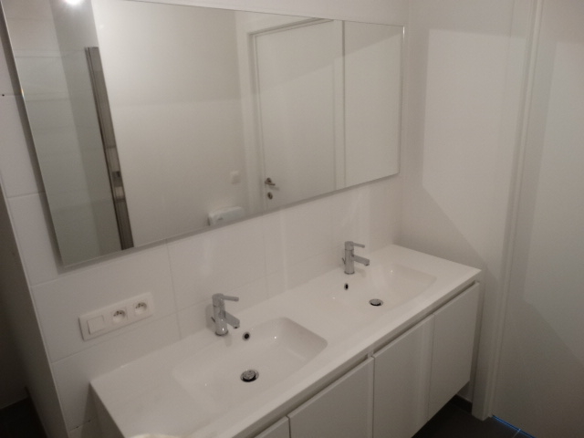 Inkom, toiletruimte,2 slaapkamers,badkamer (dubbele lavabo,inloopdouche en ligbad),leefruimte met open ingerichte keuken ( vaatwas, elektrisch kookfornuis,frigo,oven en microgolfoven),bergruimte,zuidgericht terras,aparte privé-bergruimte in kelderverdieping alsook een fietsenberging, autoparkeerplaatsen voorzien voor bewoners.