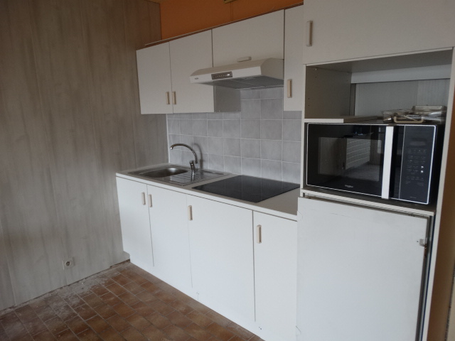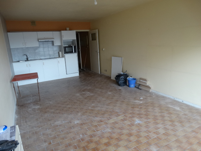 Gerenoveerde studio met inkom, leefruimte met aansluitend balkon,nieuwe keuken (frigo,elektrische kookvuren,oven en dampkap),