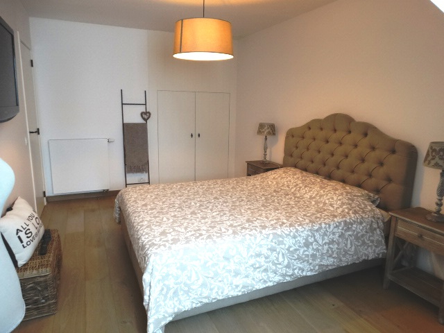 Het 1ste verdiep met nachthal, 2 ruime slaapkamers, een dressingroom, ruime badkamer (natuursteen) met ligbad, inloopdouche en lavabomeubel, en apart toilet.