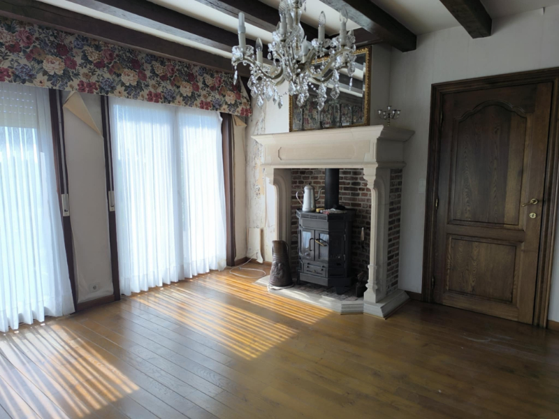 leefruimte 2 met authentieke schouw en haardkachel.